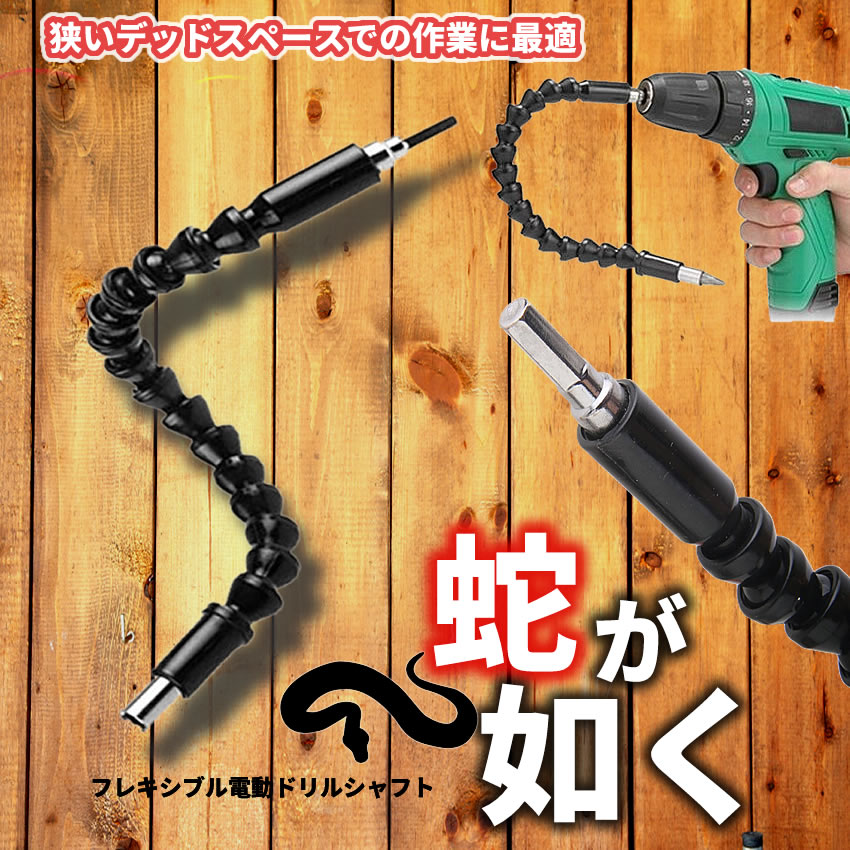 送料無料(メール便にて発送致します) 狭いデッドスペースでの作業に最適!!! フレキシブル電動ドリルシャフト「蛇が如く」の登場です!!!! 一般的なカートリッジタイプのハンドドリルや 電動ドライバーのために使用することができます。