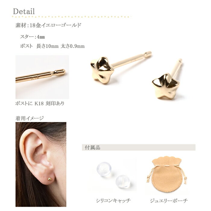 商品説明素材 K18(18金イエローゴールド/18金ピンクゴールド)サイズ ポストの太さ0.9mm 長さ10mm刻印K18付属品 GUARANTEEカード(品質保証書)ジュエリーポーチ一言コメント星型ピアスワンランク上の艶、質感をお楽しみください。