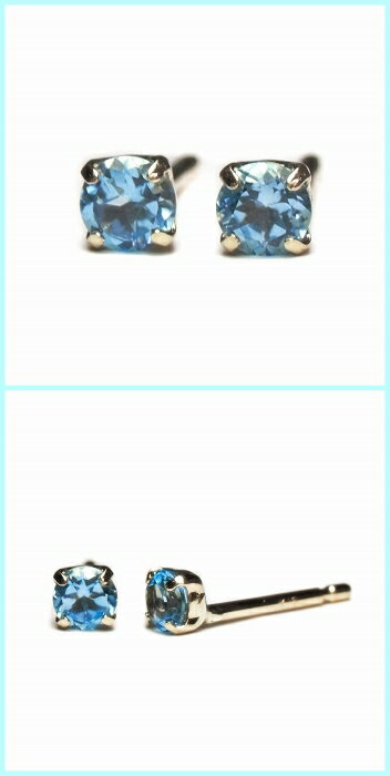 [T-jms] 軸太 0.9mm K18 18金 YG 3mm スイスブルートパーズ セカンドピアス 箱爪タイプでシッカリした造り!小さくかわいいサイズで透明度は良好です。
