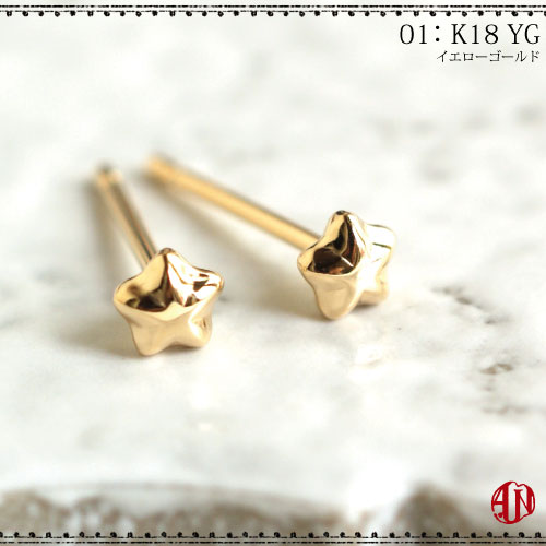 ◆セカンドピアス◆ スター K18 YG PG WG スタッドピアス 「ラッキーモチーフ 星(スター)」 チャンス到来! 黒い夜空に光り輝く星は、身に着ける人に希望と自信をもたらし、明るい未来を照らす人気のモチーフです。