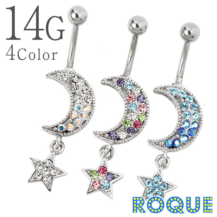 へそピアス 14G ボディピアス スターアンドムーンジュエル(1個売り)◆オマケ革命◆