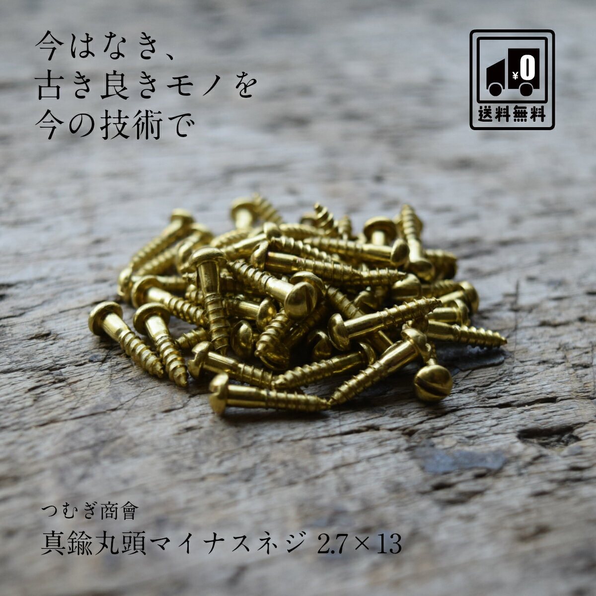 【送料無料】真鍮丸頭マイナスネジ 2.7×13(18本×3袋=54本入) / dカン ロック ビス アンティーク レトロ 昭和 デッドストック DIY インテリア 内装 リフォーム おしゃれ 建築金物 マイナスビス 日本製 古道具 小さい 内装 家具 フック オリジナル
